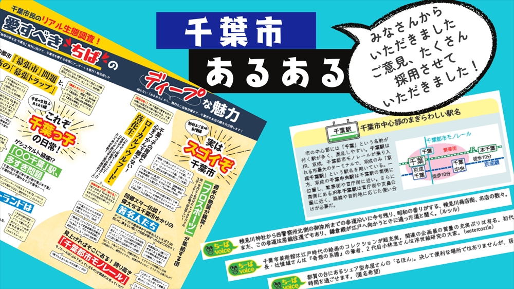 今回の『地球の歩き方 千葉市』版制作にあたり、市民&読者アンケートを実施。その結果、非常に濃い「ご当地あるある」や「自慢」が続々と寄せられました。