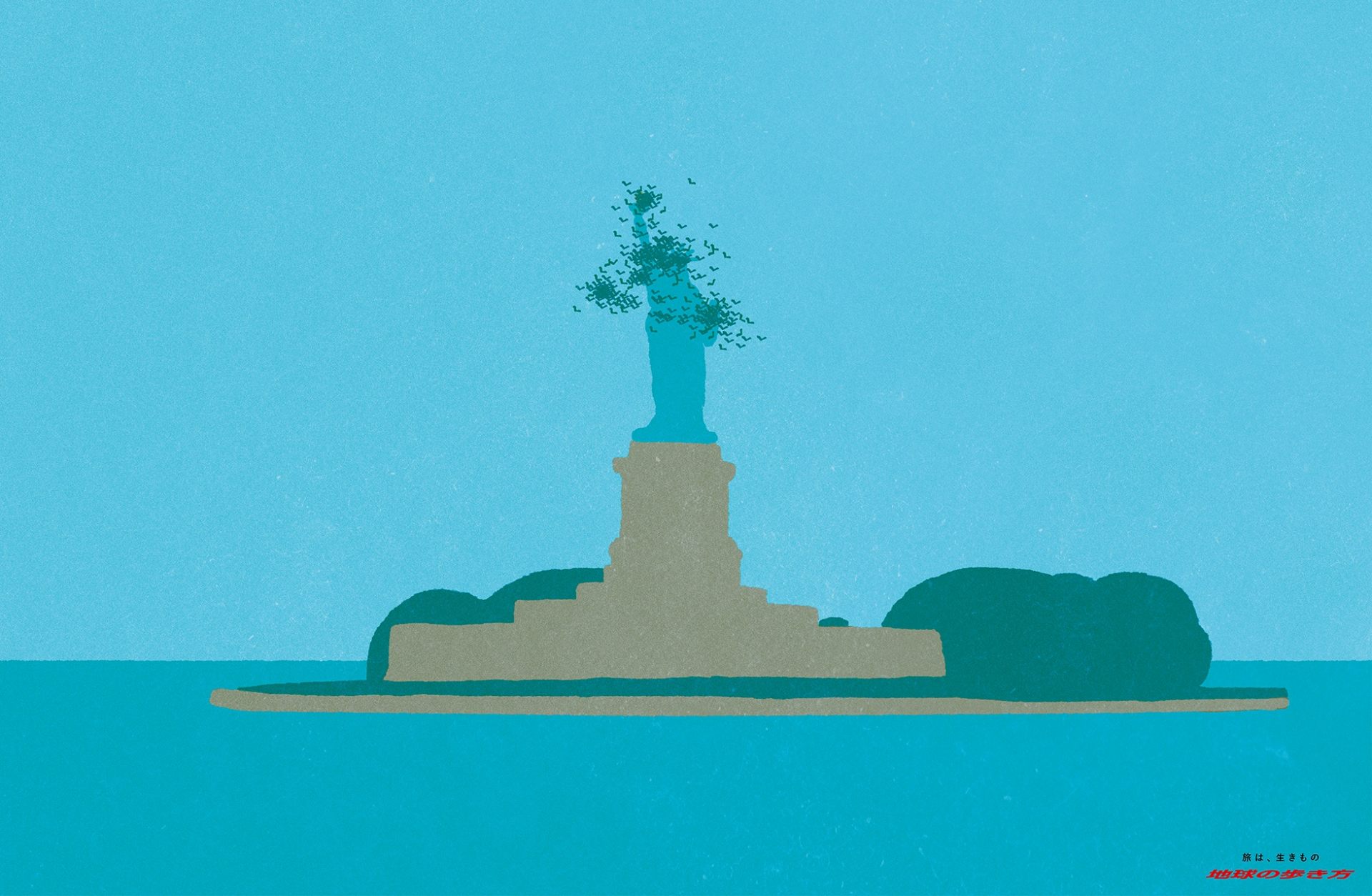 バードアタックを受けている自由の女神や土砂降りのエッフェル塔など、一見マイナスにも思える旅の風景が、作品の右下に添えられた「旅は、生きもの」というキャッチコピーとともに、「いやいや、だからこそ旅はおもしろい!」と強く訴えかけてくるよう。