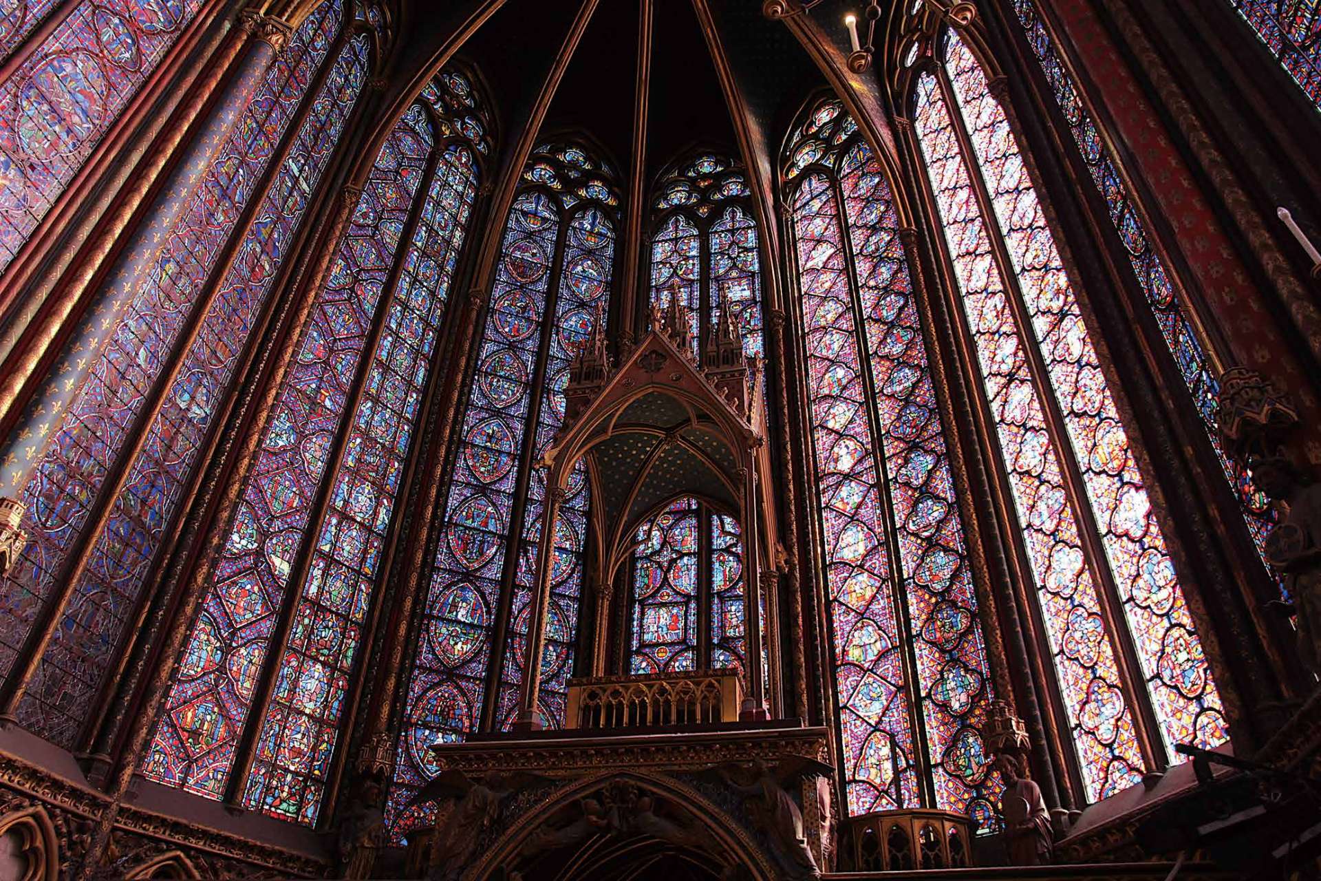 セーヌ川のシテ島に位置するサント・シャペルは、13世紀に建設されたゴシック様式の教会で、その内部を飾るステンドグラスは世界的に類を見ない美しさを誇ります。この教会はフランス王ルイ9世がキリストの聖遺物を納めるために建設したもので、その壮麗さは当時のフランス王室の権威を象徴しています。内部の繊細な装飾や彫刻も見どころで、ゴシック様式の美しさを感じられます。