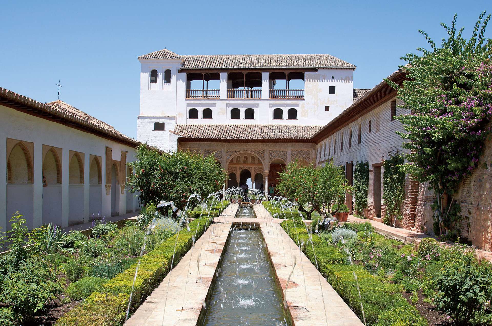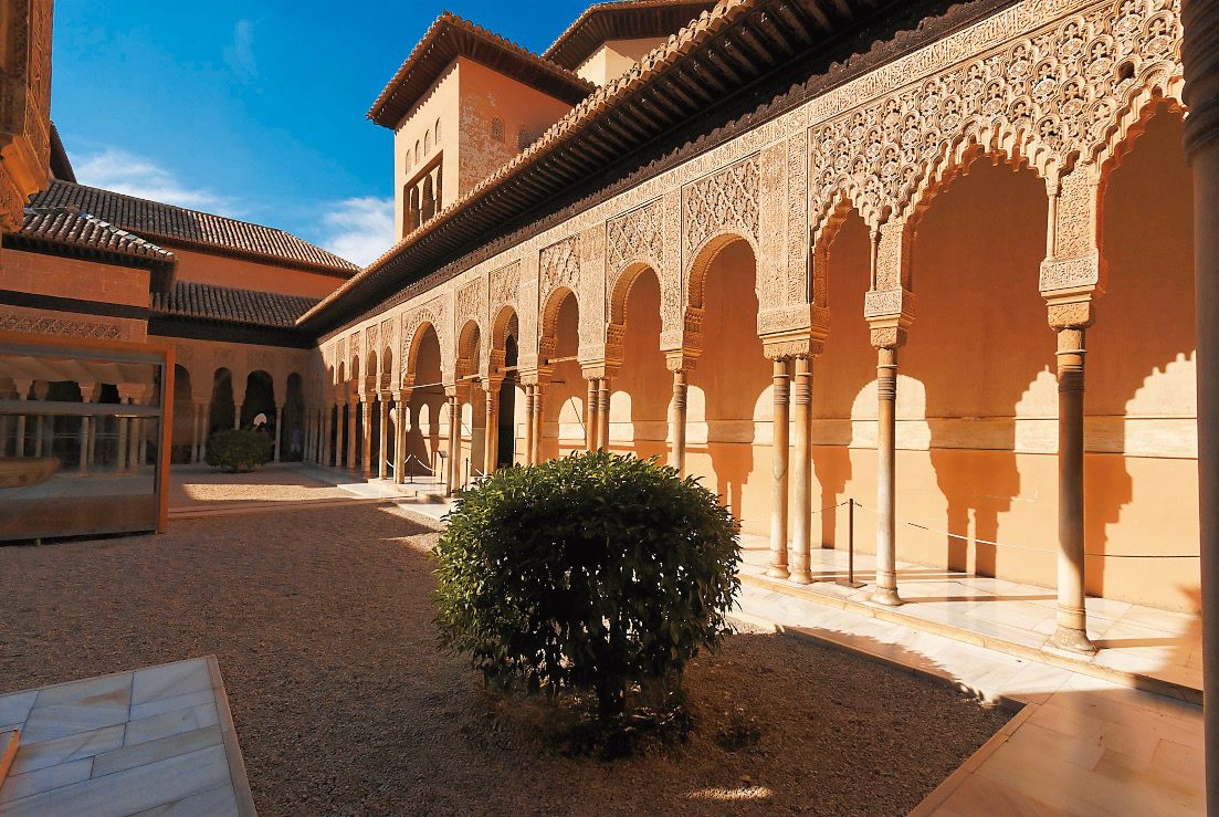 イスラム建築の最高峰として知られるアルハンブラ宮殿は、細部にまでこだわった装飾や、精巧なアラベスク模様が施された壁面が印象的。14世紀に建てられたこの宮殿に一歩足を踏み入れれば、宮殿が作り出す幻想的な世界に心奪われるだろう。アルカサバの見張り台からはグラナダ市街を一望できるのも魅力。