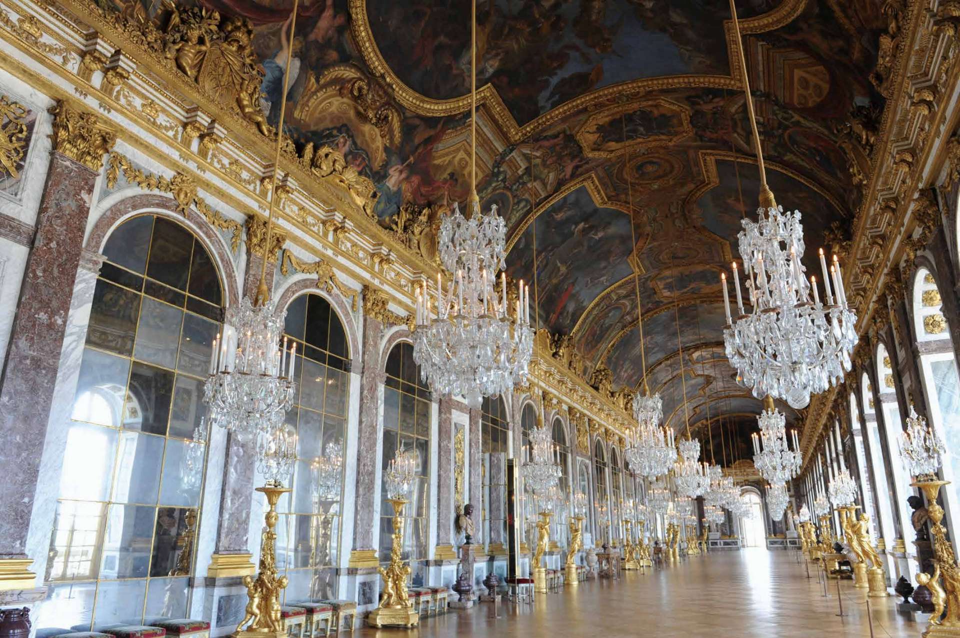 パリ市内から1時間ほどでアクセスできるヴェルサイユ宮殿は、フランス王政時代の栄華を象徴する豪華な宮殿。ルイ14世によって建てられたこの宮殿は、その壮麗さから世界の王宮の模範となり、フランス革命の舞台ともなった歴史ある場所です。ヴェルサイユ宮殿の最大の見どころは、王族の結婚式での舞踏会場などの華やかな祝典が行われた鏡の回廊。357枚の鏡が並び、光が反射してきらめく光景が息をのむ美しさです。さらに、夏には庭園で噴水と音楽、イルミネーションを融合させた夜の大噴水ショーが行われます。