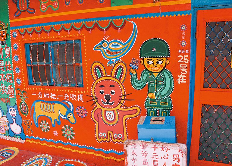 彩虹眷村は、まるで絵本のなかに迷い込んだような鮮やかな壁画アートが印象的な村。もともと取り壊される予定だった場所に、黄永阜氏が壁や道路にカラフルな絵を描き始めたことから生まれた人気の観光地。どこも絵になるため、フォトジェニックな景色を求めて多くの観光客が訪れます。