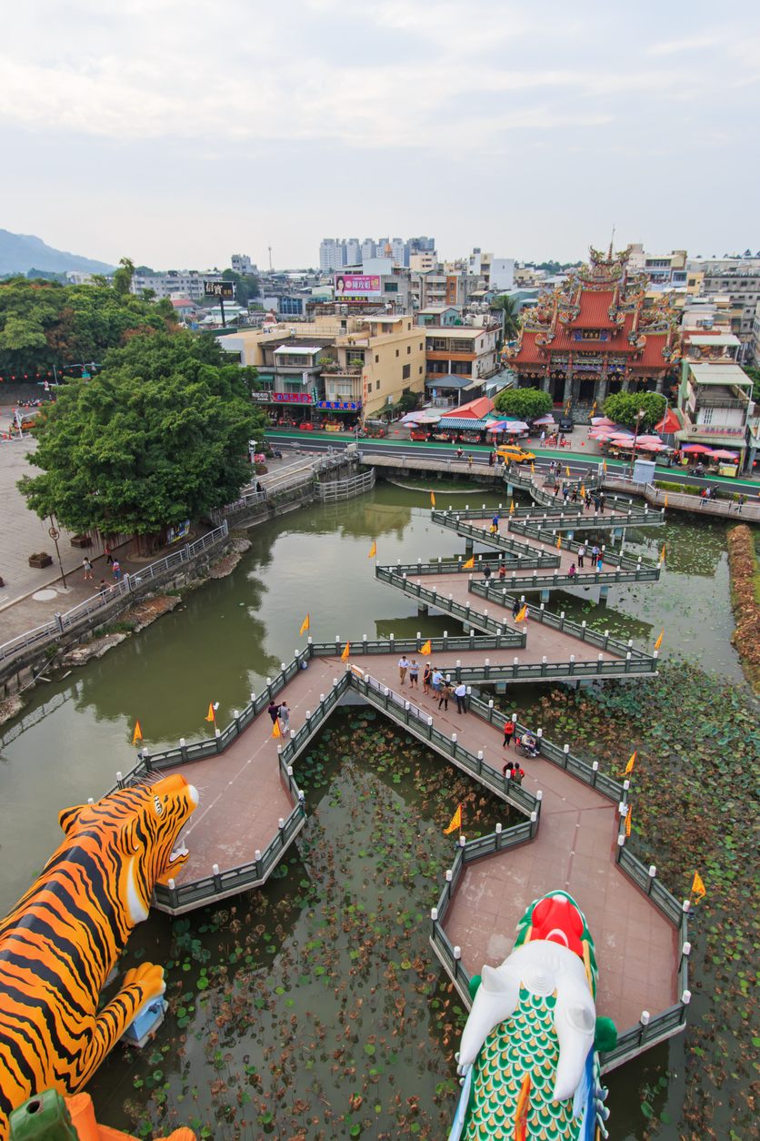 左營蓮池潭は、市街地の北・左營區に位置する約7ヘクタールの淡水湖。湖畔には、龍と虎が待ち構える龍虎塔があり、龍の口から入って虎の口から出ると罪が浄化されるという言い伝えがあります。湖の周辺には歩道や自転車道があり、都会のなかでリラックスした時間を過ごせます。
