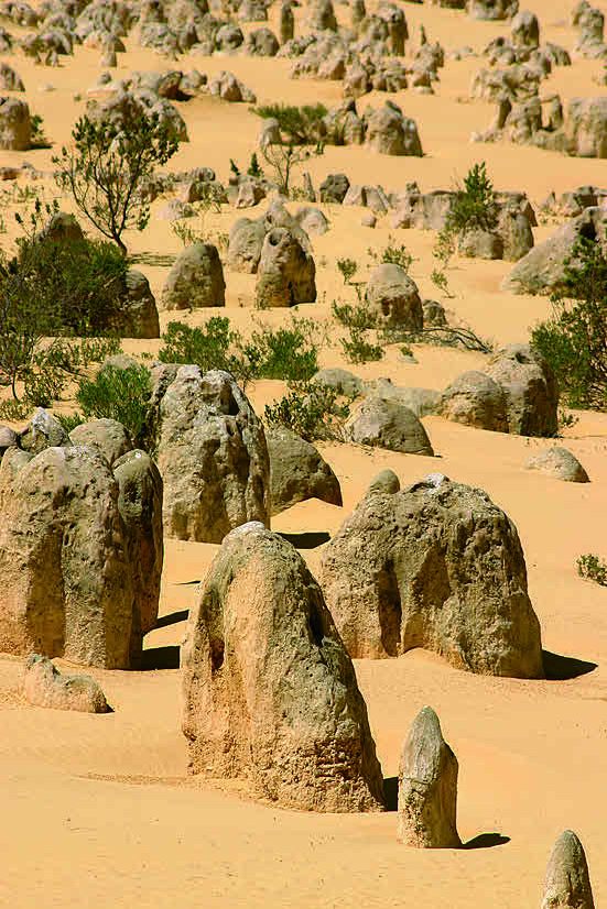 ナンバン国立公園の一角に広がるピナクルズは、西オーストラリアを代表する自然景観スポット。かつて海だったこの一帯に石灰岩層が形成され、そこに原生林が根付いた。次第に大地が風化し、石灰岩層と原生林の根により塔のような石灰岩の柱群が形成された。いまも風化は進み、少しずつ変化している。同じ景色は二度と見られない。