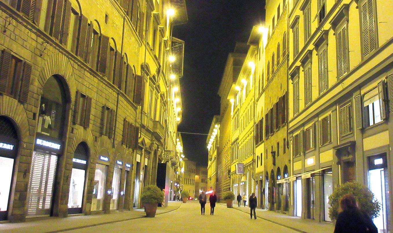 15世紀からの歴史的な建物の並ぶこの通りは、軒を連ねるブランドショップと相まって優雅な雰囲気だ。サンタ・トリニタ橋までの400mほどの間に、高い屋根の豪壮な館の建つたたずまいは、かつてのこの町の豊かさを象徴しているようでもある。特に注目したい館はストロッツィ宮とサンタ・トリニタ広場そばのフェラガモのショップと美術館のあるスピーニ・フェローニ宮Palazzo Spini-Feroniなどだ。