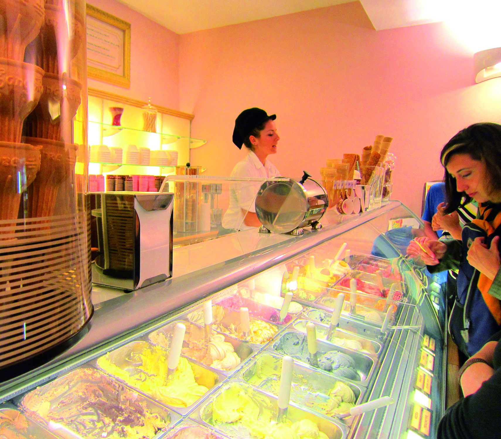 トリニタ橋のたもと、いつも行列のできるジェラテリア。季節の果物を使った自家製ジェラートが人気。店内ではトスカーナ産のワインやジャムなども販売しているので、おみやげ探しにも最適。