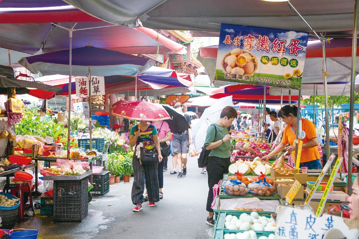雙連市場は、地元の人々が日常的に利用する市場で、新鮮な野菜や果物、魚介類、肉類がところ狭しと並べられている。市場内には食堂も多く、台湾らしい朝食を楽しむことができる。観光地化していないため、地元の人々の生活に触れたり、親しみやすい雰囲気を感じたりすることができるのも魅力のひとつ。市場の中ほどには学問の神様を祀る文昌宮があり、熱心に祈る学生の姿がある。