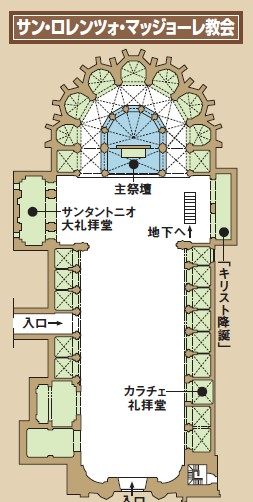 教会内部は豪華な装飾、地下に古代の遺構が広がる