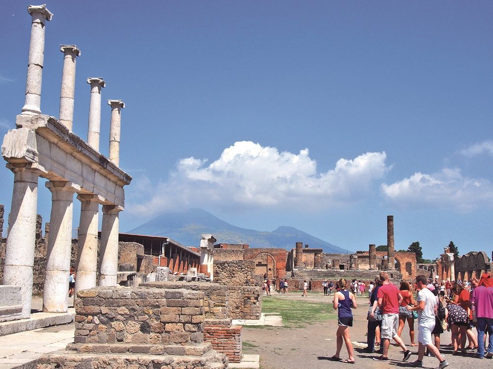 約1900年前、ヴェスーヴィオ火山の噴火によって埋もれた古代都市ポンペイ。ここは当時の生活様式を今に伝えるタイムカプセルのような場所である。建物や日用品が非常に良好な状態で保存されており、人々の息吹を感じることができる。また、広大な敷地には豪華な邸宅や劇場などが点在しており、当時の人々が実際に歩いた石畳の上を歩きながら遺跡を巡れば、過去の偉大な文明について思いをはせることができるだろう。