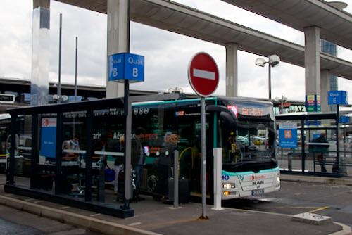 オペラ行きはRATP(パリ交通公団)による運行、凱旋門およびモンパルナス駅はエールフランスが運行しています。エールフランスバスの各系統は、ターミナル2E/Fから順に同B/D、同A/C、ターミナル1に停車し、市内へ向かいます。