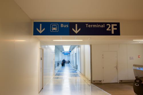 ターミナル2E(JALまたはエールフランスの発着ターミナル)の場合、バス表示を進みます。
