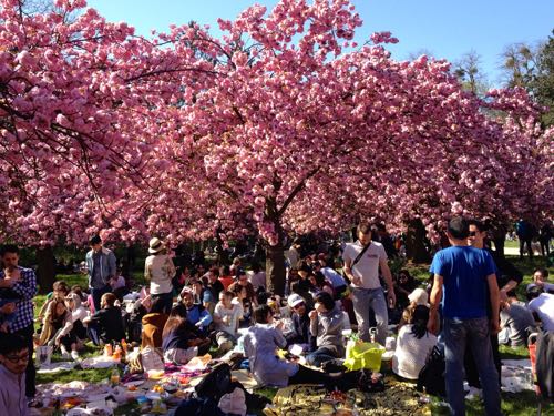 パリは春真っ盛り。週末に訪れた郊外のソー公園では、桜の花が見事に咲き乱れていました。在仏日本人と日本に興味のあるフランス人を中心に、多くの人が花見に集まりました。