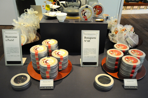 パリ店限定の紅茶もあり、店舗がある通りの名前からとった「ボナパルト」そして「ビアンヴニュ・ア・パリ」の2種類。前者は春摘みダージリンと宮崎産緑茶をブレンドしたもので値段は6ユーロ(箱入り9ユーロ)、後者はバラの香りにフルーツを添えた華やかな紅茶で5.5ユーロ(箱入り8.5ユーロ)です。パッケージも浮世絵の女性をモチーフにしたデザインで、日本らしさを強調しています。