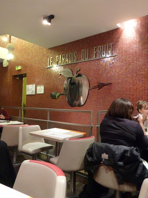 それは「パラディ・ドゥ・フリュイ」というお店。メニューには果物と野菜を中心にしたヘルシー指向な食べ物と、豆乳などを使ったスムージーなどの飲み物が並んでいます。客層は女性が中心。日本食以外で何かさっぱりした食べ物の選択肢がほしくなったら、ここを訪れるのも良いかもしれませんね。