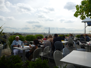 それはプランタンの屋上。ここは出入り自由のカフェテリアになっていて、パリ市内を展望しながら休憩できます。しかもここから見るパリの景色はとても特徴的! エッフェル塔などと違って中途半端に低いので、実際に鳥になったような景色です。