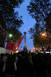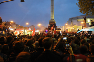 仏テレビ局TF1の速報によるとオランド、サルコジ両氏の得票率は4%差で、前者が52%、後者が48%でした。市内バスチーユ広場には続々と支持者が集まってきています。