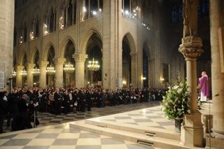 今月13日の夜、パリの中心ノートルダム大聖堂では、地震の追悼ミサが行われました。在フランス日本国大使も出席し、多数のフランス人と日本人が今回の痛ましい被害に祈りを捧げました。