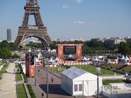 エッフェル塔近くのトロカデロ広場ではワールドカップ期間中に大型スクリーンが特設されています。そこで誰でも無料でサッカー観戦ができます。