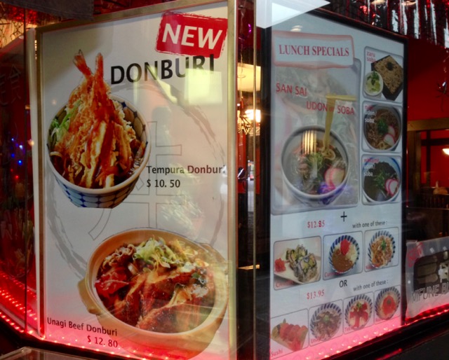 近鉄モール内の老舗日本食レストラン三船では、ミニ丼&ミニヌードルセットがランチスペシャルで、親子丼、玉子丼、カツ丼、他人丼(牛&卵)ちらし寿司から一種類。 キツネ、タヌキ、月見、山菜、ザルのうどんかそばから一種類で$11.25 好きなものよりどの組み合わせが最もお徳か考えてしまう。 営業時間11時〜11時。