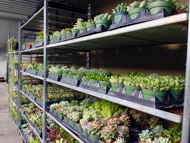 所狭しと棚の上にもびっしりとお花やプラントが置いてある。