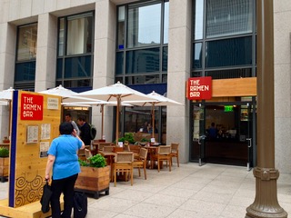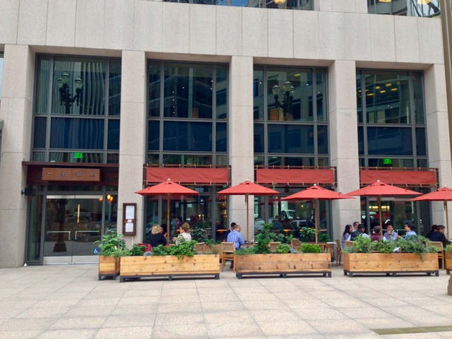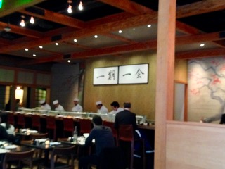 都会チックな居酒屋スタイルのレストランは、セレブシェフMicheal Mina(マイケル・ミナ)とソノマの日本食レストラン "HANA" ハナレストランのコラボ。 気がつけばダイニングも満席になっていたけど圧迫感がないのは、天井が高くゆったりとしてるからか? 建築家 Phillip Johnson氏らが手がけた1982年に完成のオフィスビルの一角。 モダンアートな間取りが店内をより一層洗練された空間にしている。