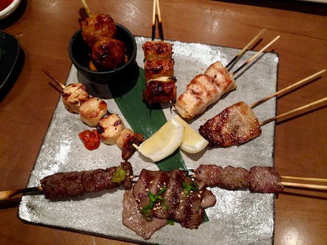 炉ばたお任せは$26 たれ、ディッピングソース、七味‥ チキンの胸肉の柔らかくお肉甘みがギュッと詰まっていた。 ポークベリー(豚バラ肉)は脂身がカリッとしていてクドさが全くない。 ビーフは柚子胡椒がアクセント。 脇役とあなどれないマッシュルームもジューシーだった。