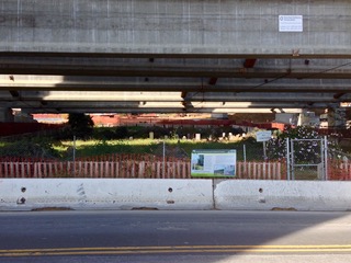 週末ゴールデンゲートブリッジへ通じる道路ドイルドラブ(Doyle Drive)を封鎖しプレシディオパークウェー(Presidio Parkway)の工事があり無事終了。 トンネルあたりのカーブがどうこうと専門家のコメントや実際にカメラを積んでテレビ局がトンネルを通ってみたりしていたので、私も『プレシディゴーダウンタウンシャトル(PresidiGo Downtown Shuttle)』で近くまで行ってみた。