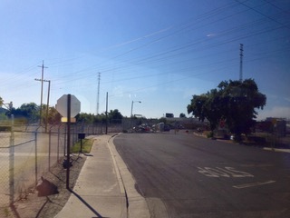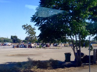 4時50分ころ、サンホアンキン駅(San Joaquin Station)に着いた。 フリーウェーを降りて駅までの間、瓦礫の山だらけで街が死んでしまっているような感じ‥ 思い出した、ストックトンは2012年財政破綻した市。 デトロイトが破綻するまでは全米で最も規模の大きい財政破綻した都市として取り上げれていた。 大きな荷物を積んで自転車に乗っている人も見かけ、この暑いのにショッピングカートを押して道路を渡っている人もいた。