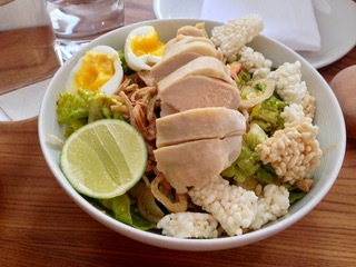 ポッシュサラダ(Posh Salad$14)にとっても柔らかなポーチドチキン(+$6)を添えてもらって、もうこれだけでランチOKなボリューム。
