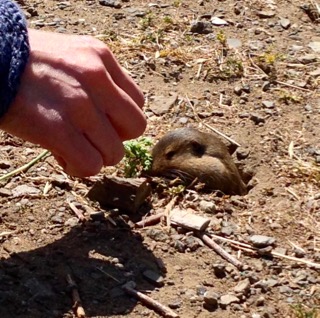 口で雑草を引っこ抜き穴の中に入れていたから試しに草をあげてみた。 一丁前に口で穴に引っ張り込んでしばらくするとまた顔を出して「もっとくれ」と言っているような顔をした。 公園内の野生動物に餌をあげちゃいけないんだけど、これは “餌付け” と言っていいのかな?