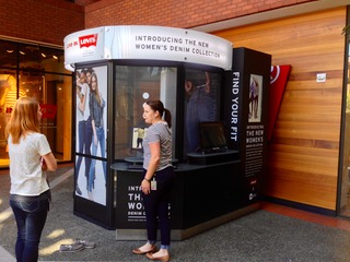 リーバイス本社1階ロビーのお店に設けられた測定器、3D立体的にサイズを測り最もフィットした物を紹介してくれるらしいのだけど‥