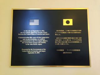 安保条約50周年を記念し、日米同盟関係に対する誓いを新たにすると記されているプラークもある。