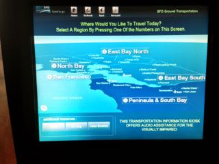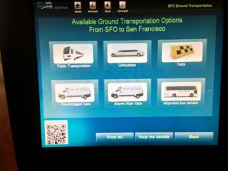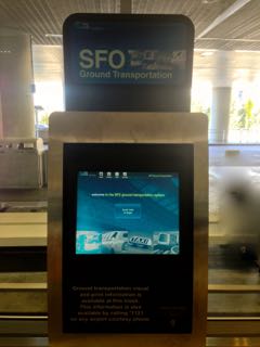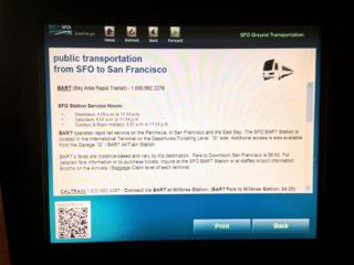 市内に向かうバス、BARTの説明(英語)が表示され