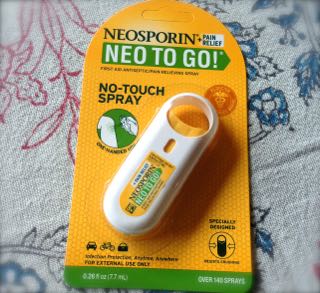 軽いきり傷、擦り傷、火傷とかに使える "抗生物質"NEO TO GO!($4.49)は、プシュッ〜とスプレータイプで小さい。 *ただし、あくまでも応急処置用として使ってね。