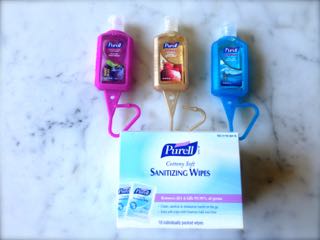 病院や学校とかでも使われている速乾性・低アレルギー除菌ジェル、香り付きでキーホルダータイプ($1.39)ひょっとして手を洗える場所ないかも? それより香りにつられてかってしまった。 そしてウェットティッシュを探してたら見つけたのが、ピュエル個別包装のシートタイプ($2 .99) キーホルダータイプは日本へのお土産にもなりそうだね。