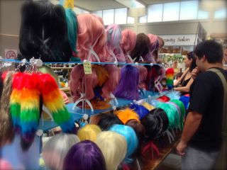 真っ黒なウィッグは、ハロウィン用、オレンジ色は、オレンジフライデーに、レインボーのウィッグは、プライドパレードにいかもしれない。(値段聞くの忘れた)