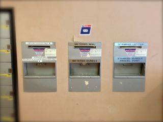 自分で重さを量って切手をつけて、隣のポストに投函。 やり方を覚えたら長い行列ともサヨウナラ。 切手だけも買えるよ。