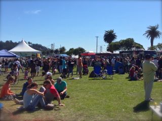 ピクニックテーブルや芝生にブランケットをひいて楽しくランチ。 フードトラックの行列の長さで人気度調査できちゃうかも? と眺めてみたが同じくらい長かった。