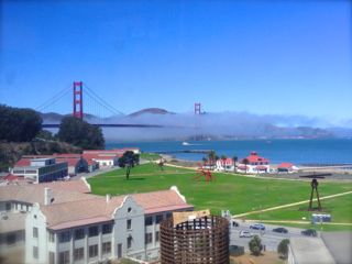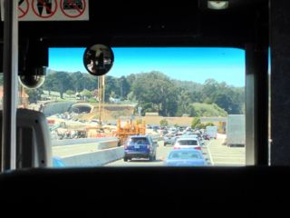 そんな中、"Golden Gate Transit(ゴールデンゲートトランジット)" バス でゴールデンゲートブリッジを渡りました。 乗用車と高さが違うので景色もよく見えるし、渋滞のおかげ(?)で車窓からの写真もブレずに撮れた:)