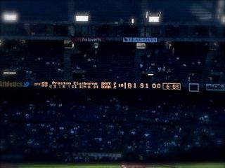 18回、(確か)満塁。 ピッチャーは、今シーズンで引退のヤンキース守護神マリアノ リベラ、対するバッターは、ルーキーのネート フレイマン。 まさに "適時打" サヨナラヒット。 世代交代の瞬間と思ったのは大げさかしらん。 6:12延長18回試合時間5時間35分 A's Sweep 3games オークランドのスィープ(ほうき)3連勝、長い戦いが終わった。 ホッとした。