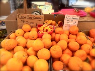 4月に入ると一気にレモン、オレンジ、グレープフルーツの季節となり、"南の方" から柑橘類を山と摘んだトラックが、ファーマーズマーケットにやって来ます。 なって言ったって、オレンジカウンティーという地域もあるくらいですから‥。