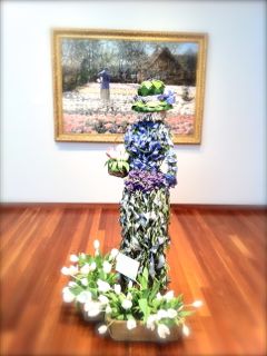 制作された方は、7〜8年目の(ご本人曰く)中堅どころ。 去年は第二希望でしたが、今年は第一希望の作品だったので嬉しかったそうです。 前夜祭で遅くまで美術館内ライトが付きっぱなしだったので、お花が休めなくて、この後少しお水を上げたり面倒をみてあげるそうです。 また3日目(中日)には、しおれてしまうお花も出てくるでしょうから生け替えなければならないでしょう‥。 五日間、毎日様子を見にやって来るそうです。 思い通りに出来た満足感と我が子を見るように愛おしい眼差しが印象的な彼女でした。