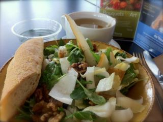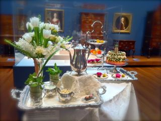 クリームポットのクリームには、クリーム色系白菊が入っていました。プティフールには、サボテンの花! これを見ながらミュージアム・カフェの話。
