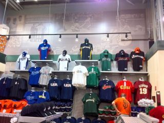 オフィシャルショップの “DUGOUT” は、St Patrick’s Day の緑色グッツと、今日からは、WBCグッズのディスプレーが始まりました!!