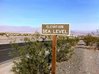 Stovepipe Wells Village 辺りで、『SEA LEVEL(海抜0m) 』 の表示が出てきたので、記念写真。
