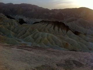 今回初めての "砂漠体験(?)" 12月だというのに77°F(22〜23℃)とサンフランシスコに住んでいる者にとってはインディアンサマー並みの暑さでしたが、夏場は、50℃を超えるそうです。 「いつがベストシーズンなのか?」 3月〜4月頃でお花も咲いて冬場とは別の風景が見られるそうですが、訪れるのなら冬場は人もいなくて雄大な大地を満喫できる。 同感! 自動車でサンフランシスコを出発、途中ローンパインという町に泊まり、二日目の昼下がり。 デスバレー最後の立ち寄り場所が。