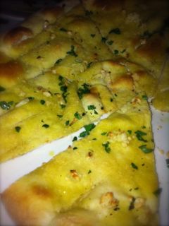 「あとは、Focaccia( 薄いピザ皮にガーリック、オリーブオイル、パルメザン、シーソルト、パセリのソースなしピッザスタイル$4.75)で十分だ。」 とシェフ・グレゴリオ。 じゃそれお願いします。