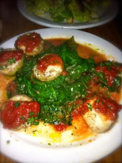 Antipasto Platter ($13.00) を頼んだ後に、Ripieno($6.50) マッシュルームにゴルゴンゾーラを詰めてほうれん草ソテー、ペスト&トマトソース を勧めてくれた。