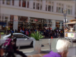 アメリカ西海岸初のユニクロが、10月5日オープンしました。 これで、Gap Forever21 H&M Zara と 『ファストファッション銀座』 となりました。 手頃な値段のショップと高級ブランド店がわずか数ブロック、まさに軒を連ねているユニオンスクエア・ショッピンエリア。
