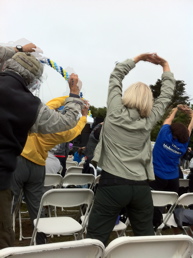 ボランティアの皆さんの声援の中、それぞれチームのユニフォームを着て、歩け歩け! がんばった後は、広場でパーティー待ってます☆